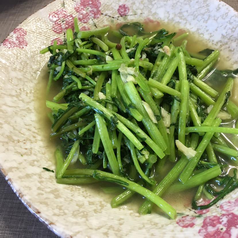 水炒茼蒿,这个简单,放点蒜蓉在加点温开水炒一下就👌