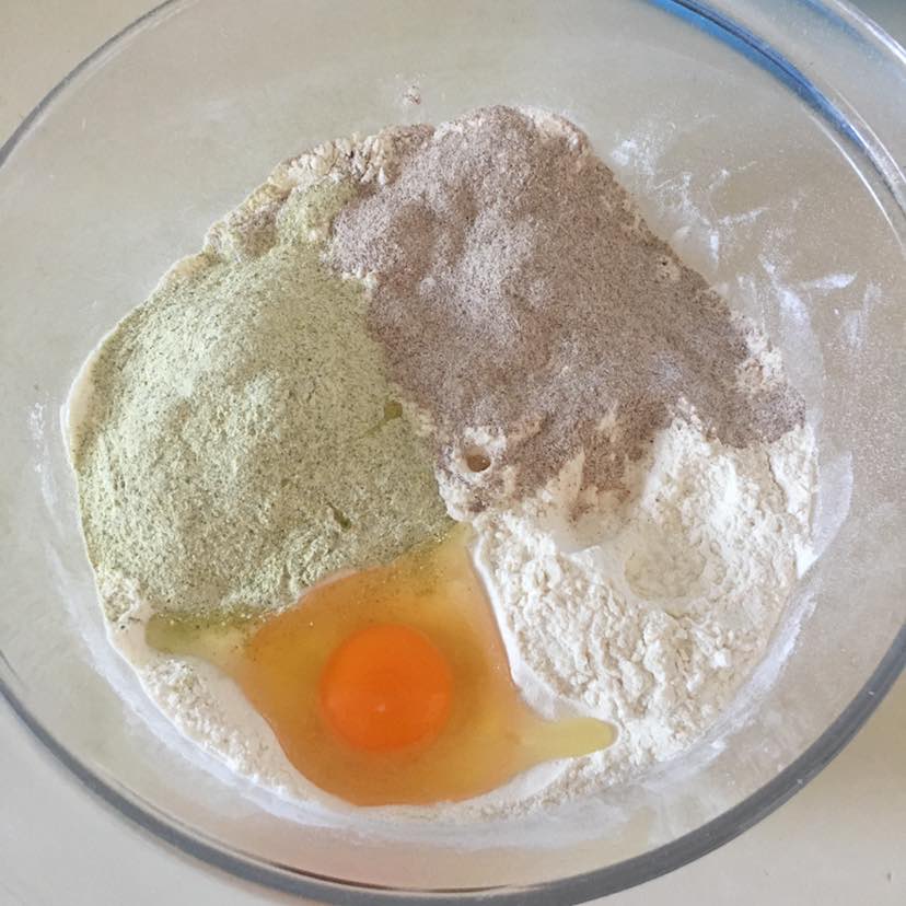 绿豆面,黑米和面白面,再加入一个鸡蛋。