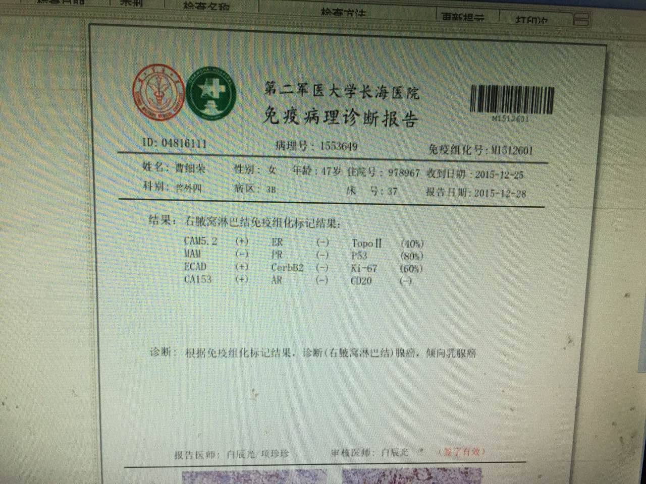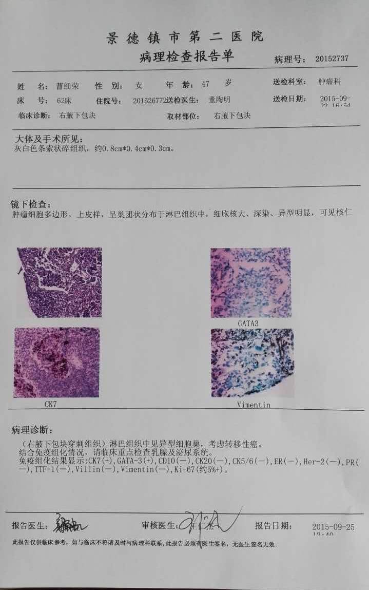 這是我母親的免疫組化,三陰的,好怕