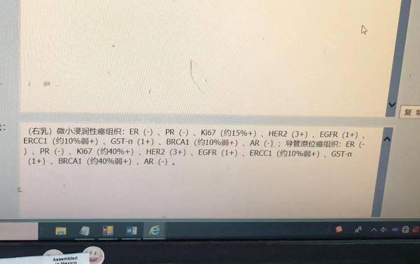 HER2型,ER,PR都是阴性,HER2阳性,化疗用环磷酰胺,吡柔比星,紫杉醇之类药,靶向有双妥。