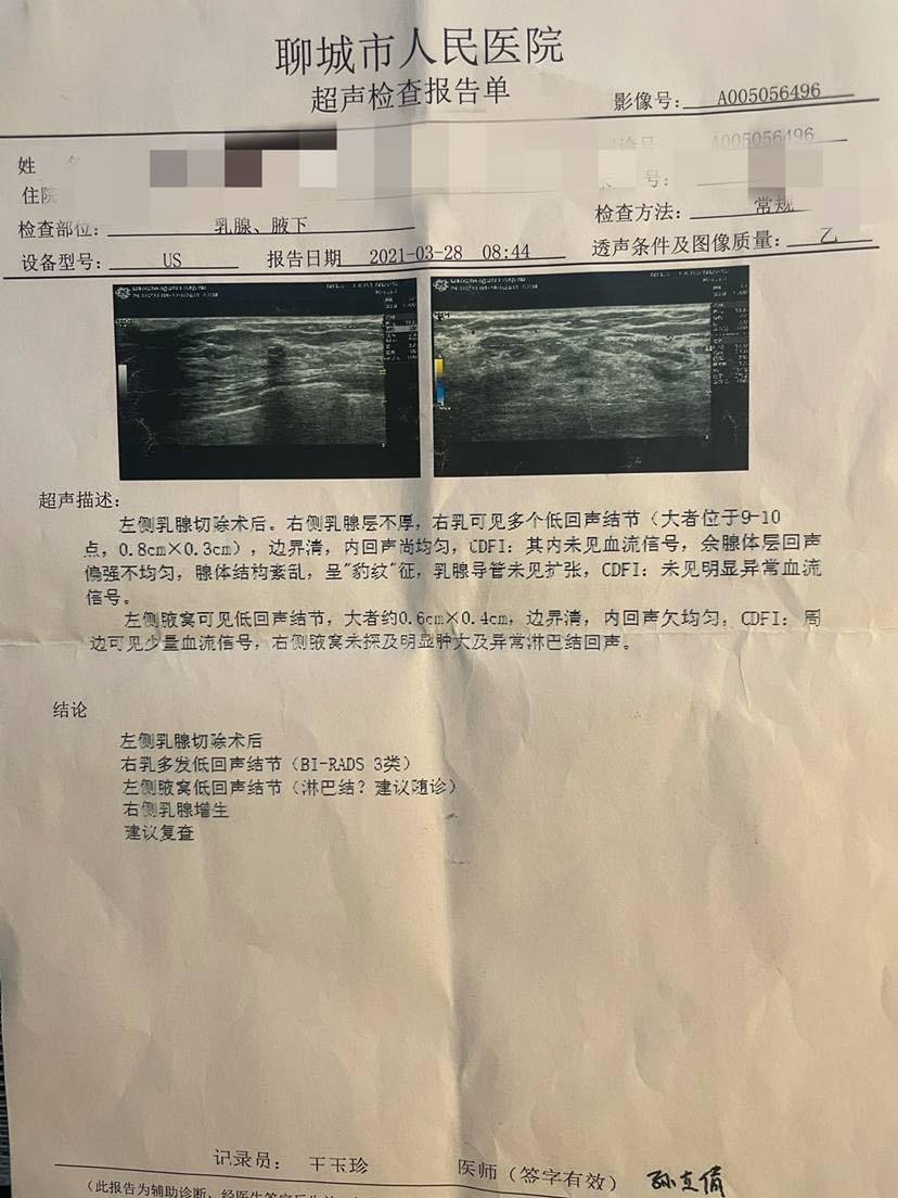 左侧腋窝清扫后,一年半复查出现疑似淋巴结,姐们们遇到过这种情况吗