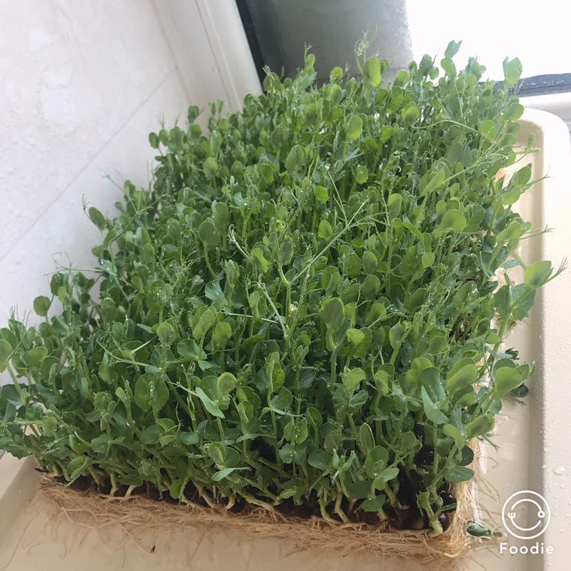 前一段时间买了豌豆苗,剪了吃了,剩下个底子。老妈不让扔,说还能长😂天天浇水,天天看好几遍😀果然又冒出来一茬👍又可以吃了😝