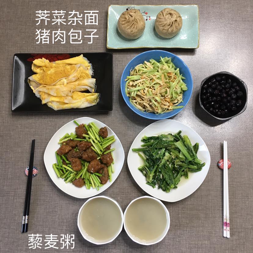 在来一碗藜麦粥和荠菜猪肉包子,吃剩的菜做我的工作午餐。