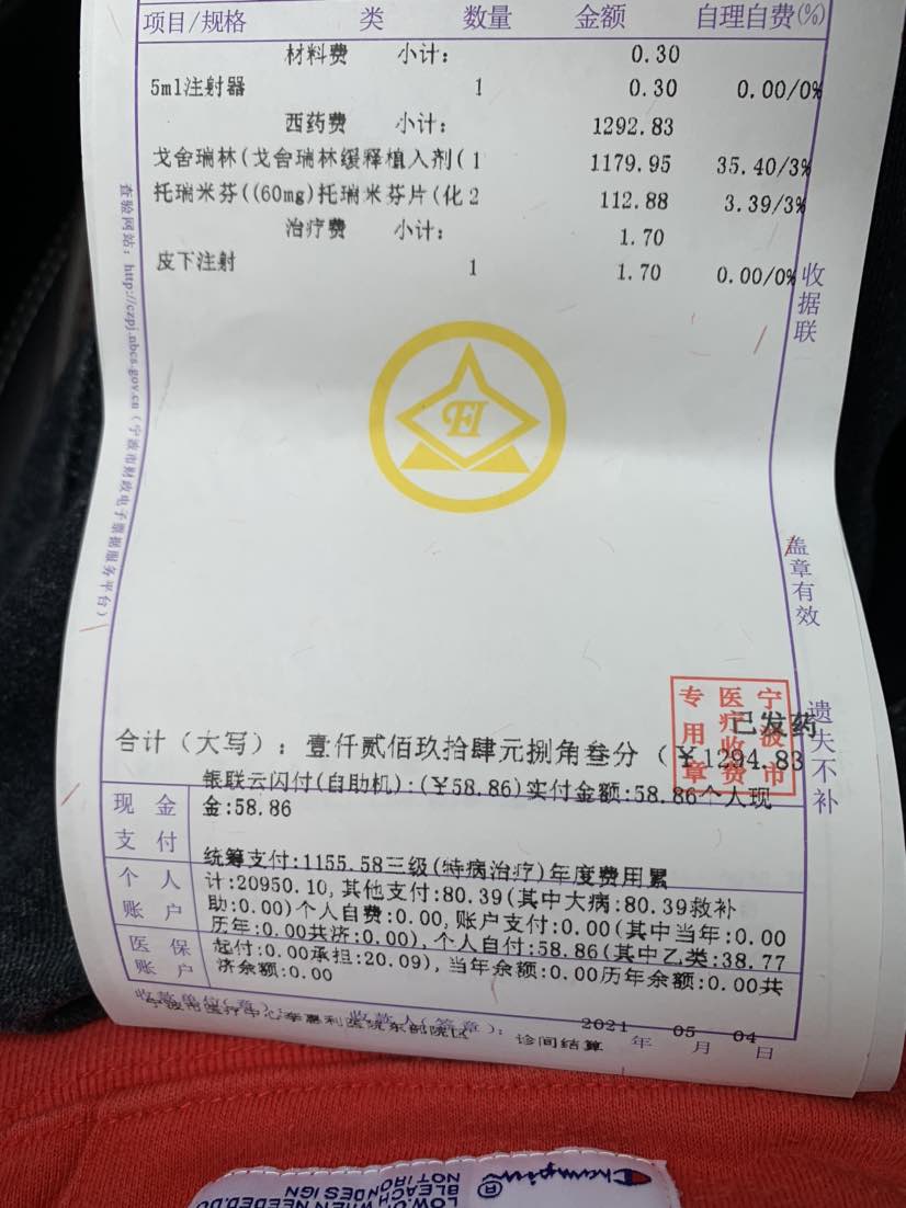 打针地方我看见这种针针头像铅笔头那么错,一想起打升白针的时候那个痛就有点瑟瑟发抖,手扒拉着裤子不肯放,护士说手拿开点,再拿开点,叭一下子不到一秒,护士说棉签按着二分钟,然后伤口贴贴上,我吃了一惊问好了?她说好了,我怎么感觉还没打,不过这句话我咽下去了,赶紧让到一边让别人打,不过这个针孔确实大,到了晚上十点我洗澡拿开伤口贴还有血出来,回来的时候不出意外的跟着导航又开错了一次路,中午我老公请假回来了,这次他开车送我去中医院配中药了,每次配两星期的中药我拎不动他只能请假了,三点多轮到我看,和医生汇报了一下已经在放疗了,内分泌治疗已经开始,自己还是失眠潮热,医生一边给我搭脉一边给我开药方,这次药方变了好几种药,一边和我说放疗一开始没什么反应,大概十多次皮肤就有反应了,而且人也会感觉疲惫,让我这段时间吃好喝好,保存体力,继续吃人参果总皂苷,然后是漫长的等待拿中药,一直到五点四十分才拿到中药,我和老公说别回家了,外面吃点直接去了一院吧,牛吃草吃了面到一院刚好七点刷卡又是等待,前面还有八个人,本来大家都是一脸木然的坐着,定时室一个老头在定位大概吵了一个小时了还在喊,不知怎么的大家都笑了起来,说这是怎么回事啊,定个位有这么长时间而且有这么痛吗?就这样大家打开了话匣子,一个年纪大点的说她也要内分泌治疗要打十年的针,我问你这么大的年纪还要打肚皮针啊,她说是啊,我的月经还在了,她两个姐姐都五十六了还有大姨妈,我说怪不得电视上在放有人五十多还在生孩子,说的就是像你这样的啊?大家都笑了起来,她说这下子好了,女人不是女人了,和男人还有什么区别啊!我看了一眼我老公,心里想最好没听见,然后说她第一次放疗时害怕放射性把她眼睛射伤就把一根小毛巾遮在脸上像个死尸一样,我们被她说的眼泪都出来了,然后说被医生一把扯掉了,说好好的干嘛白布盖着脸多不吉利,我们又一次捧腹大笑,然后我说我第一次也是全程闭着眼睛怕把眼睛射瞎了,后来就偷偷睁开眼睛瞄一下,另外一个大姐说哎,我麻将都熬了四个月了,总总熬撒当,我趁机问了一下放疗的副作用,她们说皮肤到后来有点点痒,有点点刺痛可以忍受的住的,她们俩再二次就可以结束了,和我一样也是25次,不过她们转移锁骨了,所以头颈那里也画了线,说吃饭喝水的时候喉咙痛的,这期间一个衣冠楚楚的女的进了定位室,等我放疗完她也泪流满面的出来了,发型也乱了,我一看头颈贴了纱布,我心里想难道是甲状腺癌?像我们乳腺癌定位是不痛的,这次放疗我放松了很多,因为听前面那个年纪大的说她放疗听着声音,打枪一样打了四次,我也注意了一下,发现我的照了八次,等我放疗完出来我就问我老公是不是觉得我比她们都快的感觉,他说是的,这次放疗完早了很多,到家九点多,我老公说这一天累的,我说你现在知道累了吧,要是我一个人去更累