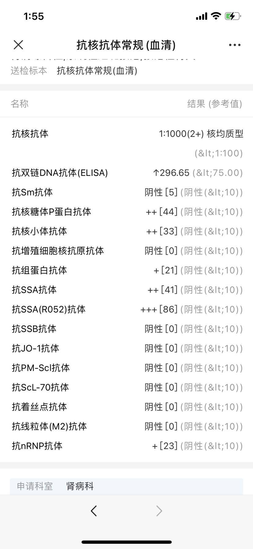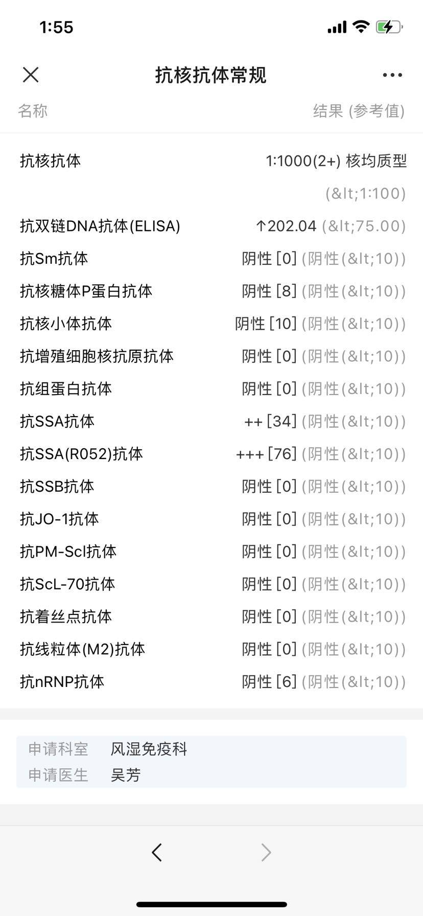 我也打第三次贝利尤了。每次都会查这个抗体,19年底确诊的时候是7个阳,20年一直用免疫抑制剂激素还是5个,不过补体啥的都在慢慢正常,今年21年开始贝利尤,已经只有2个阳了,补体一直在长