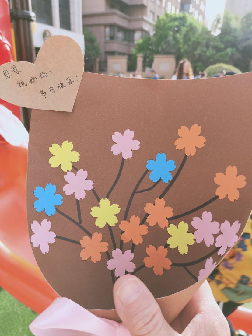 从这幅简单却意义重大的手工作品而看,我看到了很多东西...我仿佛看到了你第一次脱离我的怀抱,踏入幼儿园泪汪汪的眼神;仿佛看到了你趴在桌子上认真做手工的样子;也仿佛看到了你长大后认真学习的样子;更仿佛看到你牵挂妈妈的神情。