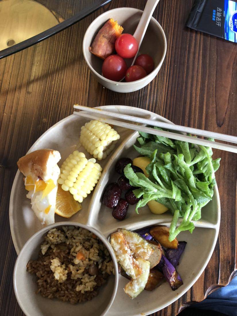 玩累了,到快中午吃饭的时候我们就步行到附近一家素食自助餐馆去吃午饭,菜品种很多,很丰盛,价格也很实惠,边吃边聊每个人吃得都饱饱的😏。期待下次再聚