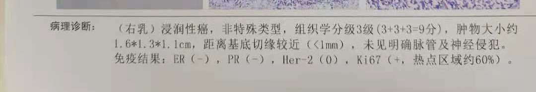 昨天医生给看了术后的报告,特别简单,还有全切后的组织照片,第一眼看上去像炸鸡块,哈哈哈,也没有分期之类只显示乳腺恶心肿瘤,我就权当最早期了,咱这阿Q经精神杠杠滴。