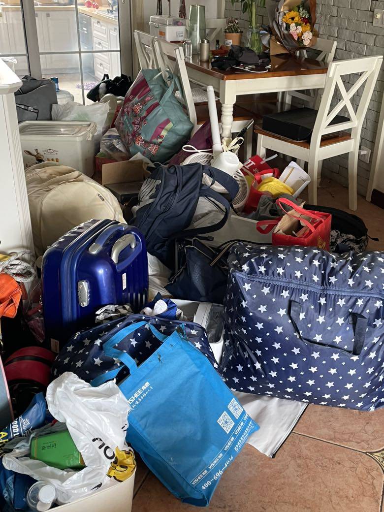 只能借助隔壁单元的电梯,从顶楼通道再搬运下楼。全家总动员上上下下跑了N趟,终于把车上所有的东西搬回了家,堆了满满一地,还得慢慢收拾清理,今天太有事做了。