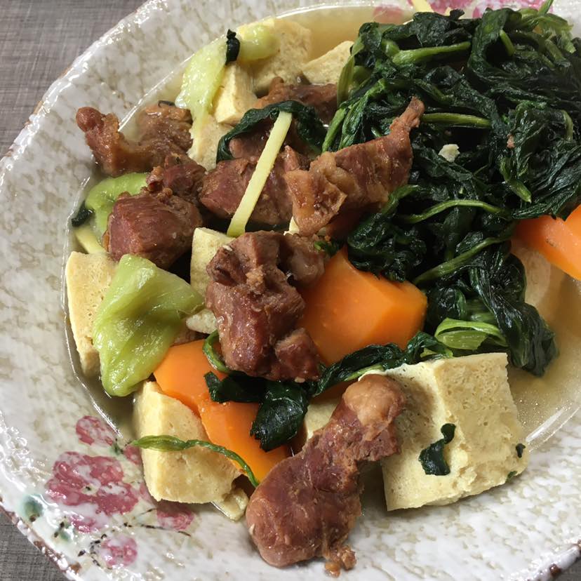 中午老王回来吃午饭,冻豆腐炖胡萝卜🥕丝瓜菠菜汤