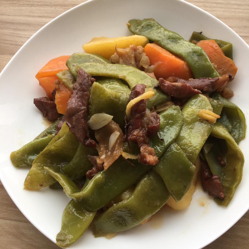 烧豆角,北方的豆角还是很好吃的,放一个土豆和一个胡萝卜均衡营养。加入少许的肉烧一下,味道美美哒!