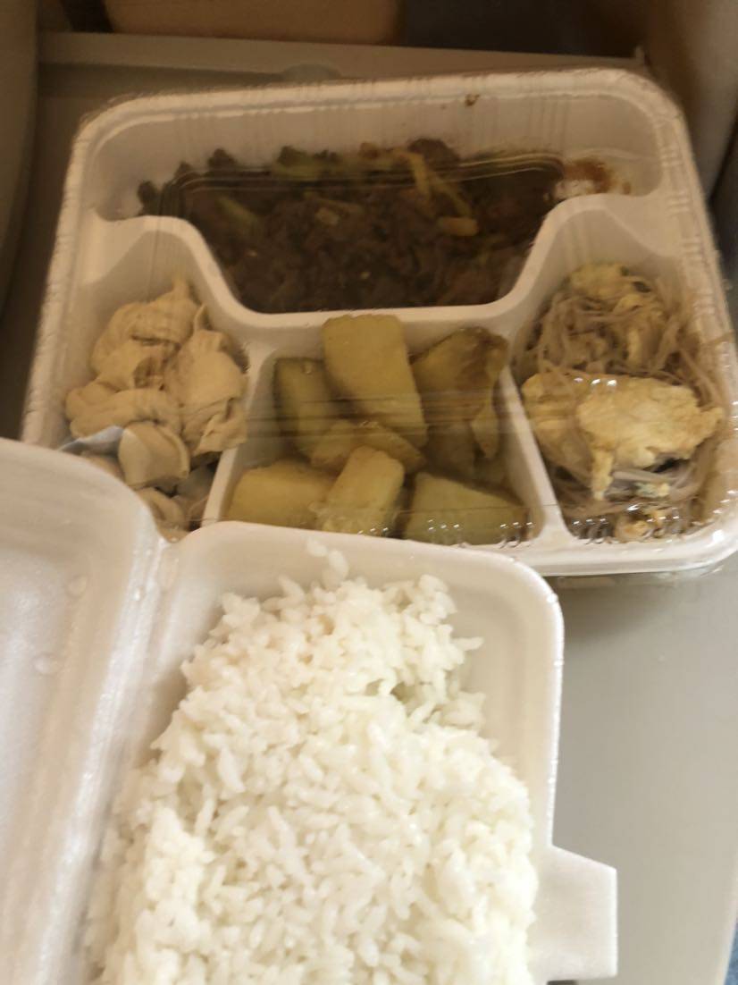 到了医院跟医生护士报道一下,一会就来吊水了,总共四瓶,五点多吊完的,封管之后就想着下去食堂吃饭,结果送饭的就来了,问我可要,我说没定,她说多出来一份,我说好吧,买了就不下去了。是份盒饭,味道真不好,咸的咸淡的淡,不过我不挑的,填饱肚子最重要。里面有个牛肉菜,吃着总感觉像辣条。而且15块钱的盒饭,感觉没啥好肉的吧。