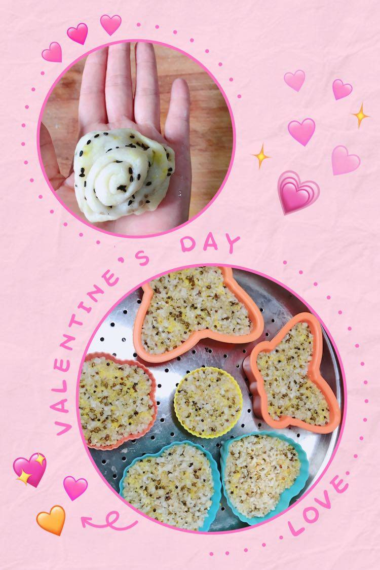 天天做饭,越来越像闹着玩似的😂昨天的小花卷,小的像幼儿园小朋友吃的😅今天想吃点米饭,直接用蛋糕模具😅好处是方便在冰箱保存🤗