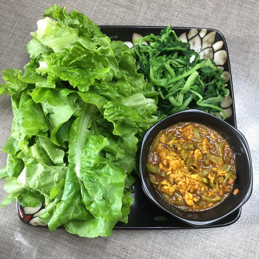 好几天没吃蘸酱菜啦,好想啊!东北长大的我,病后就吃的少了,但是不吃绝对不可以滴😄生菜和小白菜,小白菜很嫩,焯水就可以吃,但是一定要过凉水哦,我做的是鸡蛋青椒酱。