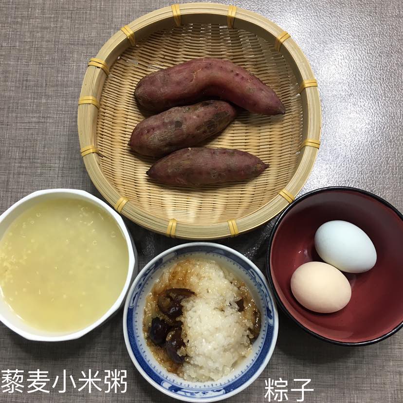 我吃的藜麦小米粥,地瓜🍠粽子和笨蛋