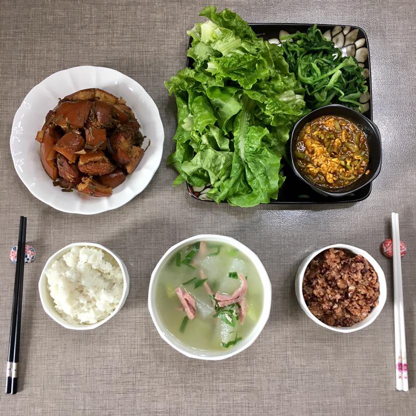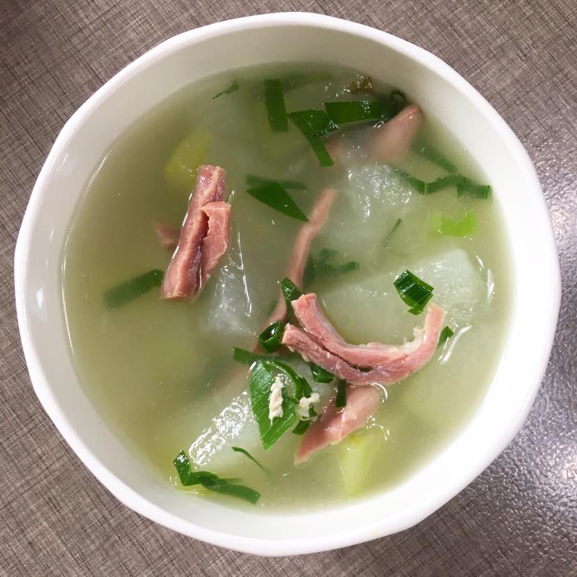 这几天没怎么吃青菜,赶紧补补。再来一碗咸肉冬瓜汤,咸肉是上海带回来的。味道杠杠滴。
