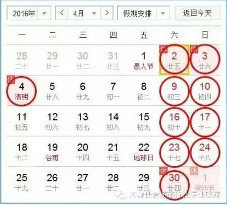 你发现了吗?清明三天小长假加上三个双休日再加上4月30日那个周六,整个4月有十天是在休假中!也就是说4月份有三分之一的时间都在放假!