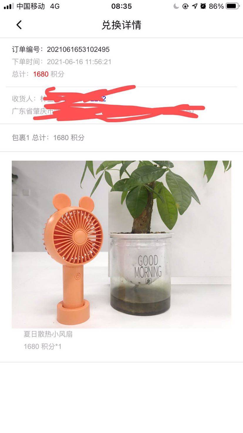 每次积分商城上面的东西都很难抢到。上个月终于抢到了一台小风扇,但是还没收到货,请问是多久才可以收到呢?