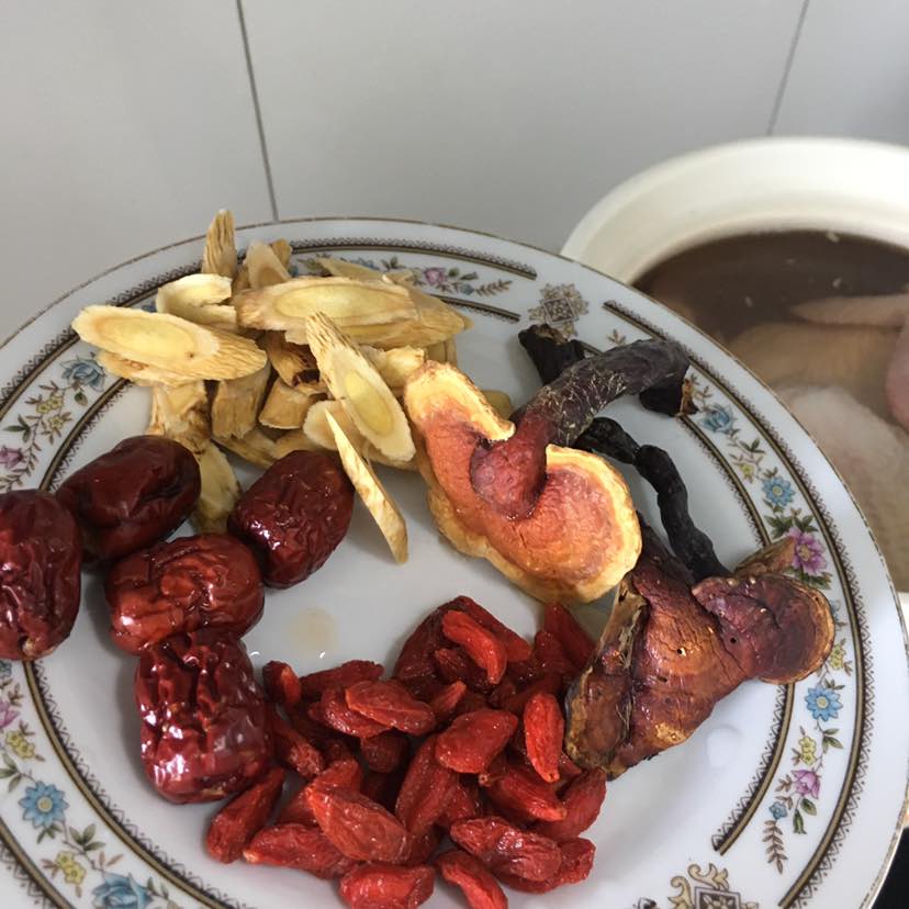 今天煲鸡汤,这是自家养的老母鸡。淘到的实属不易,放点灵芝枸杞还有黄芪大枣。
