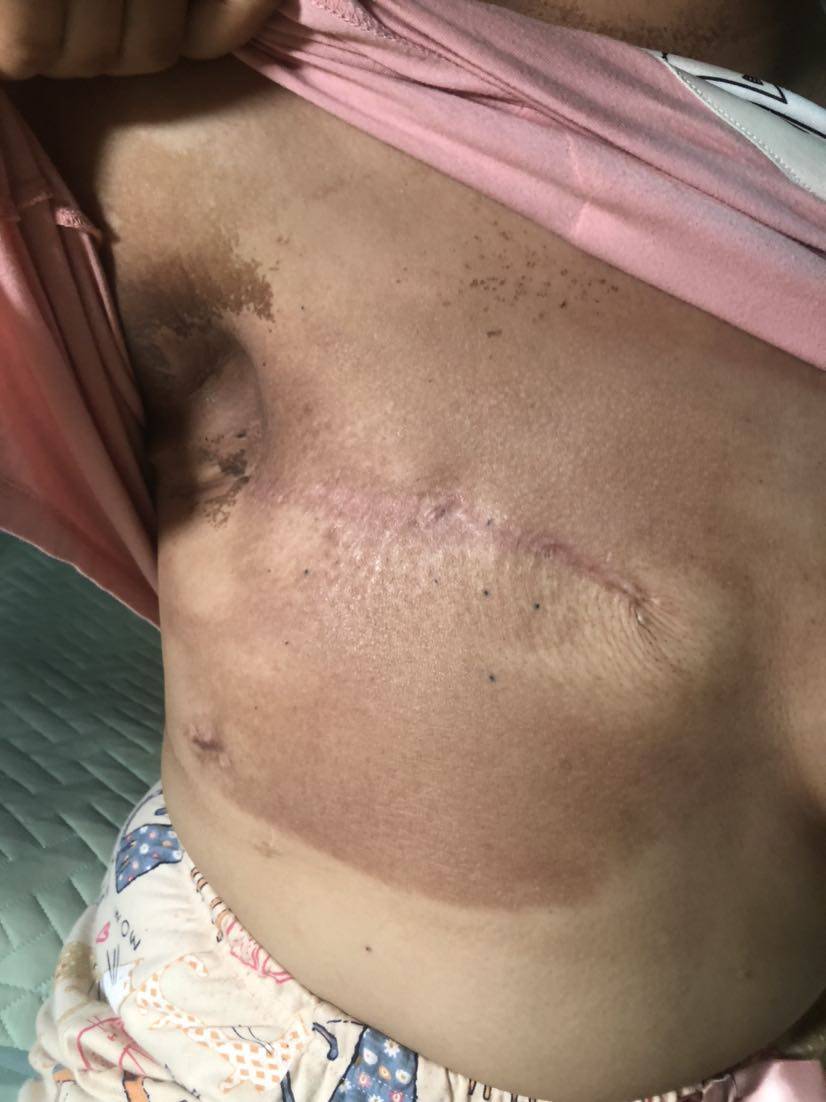 放疗结束两周,上面的黑皮已经全部脱落了,新长的肉有点黑,不过挺光滑的,从化疗开始就有到放疗结束还在的痘痘也慢慢消失了,未来会越来越好的。