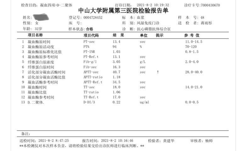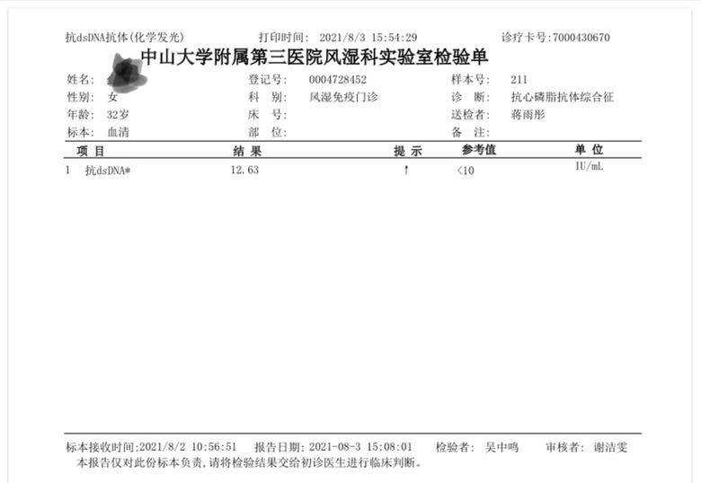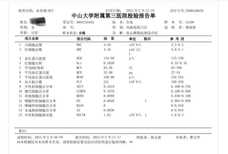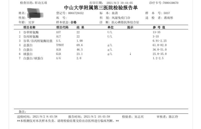 8月2日早上八点抽血,全部检查结果3日下午出来。