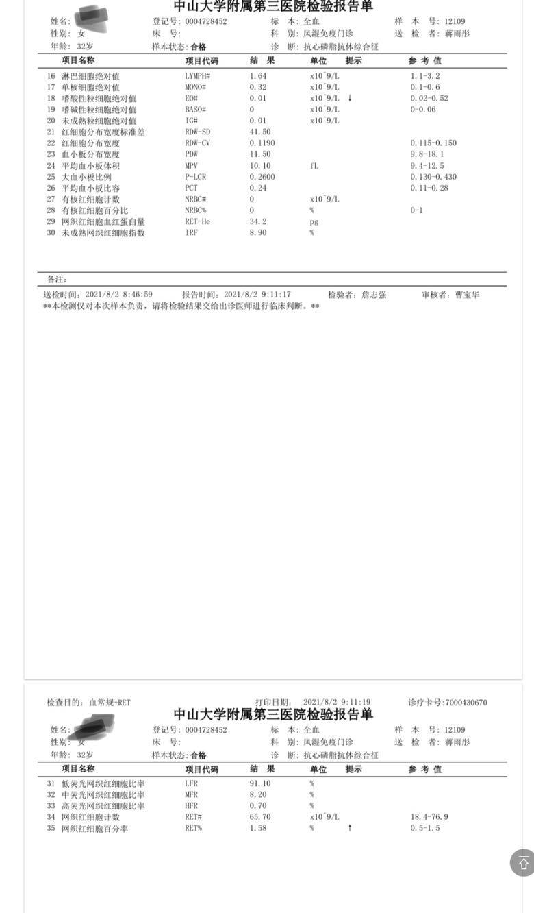 只记得五个月前的抗核抗体和这次一样,抗双链降了一点点,估计还是不能减药了。话说一把年纪了看结果的时候还是心情很激动,渴望指标转阴^_^^_^^_^收藏