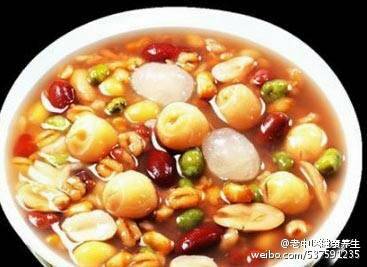 材料:绿豆、白扁豆、莲子、薏米各10克+大枣3颗+枸杞5克。