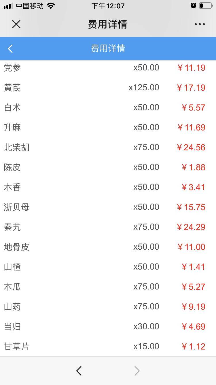 7月26挂了中医的主任号,开了中药,药方为(5剂的量)