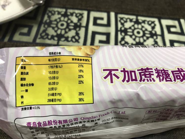 这款是咸味饼干,其实不用看配料表成分表,一口下去,嘴里的口感、味道就能判断出油多不多、糖多不多。
