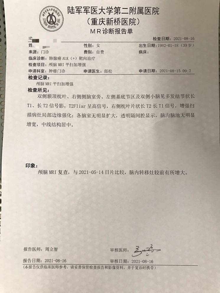 2017年9月中确诊,克唑替尼不到半个月头痛。