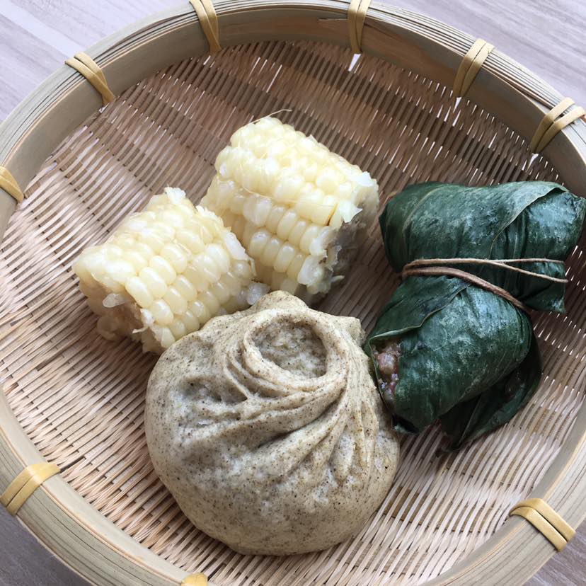 早餐:荠菜猪肉包子,荠菜是我的囤货。肉粽也是我的囤货,粘玉米