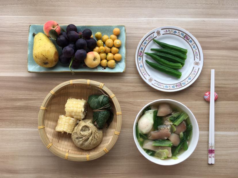 白灼秋葵,水果上午茶。一个人的健康早餐,美美哒!