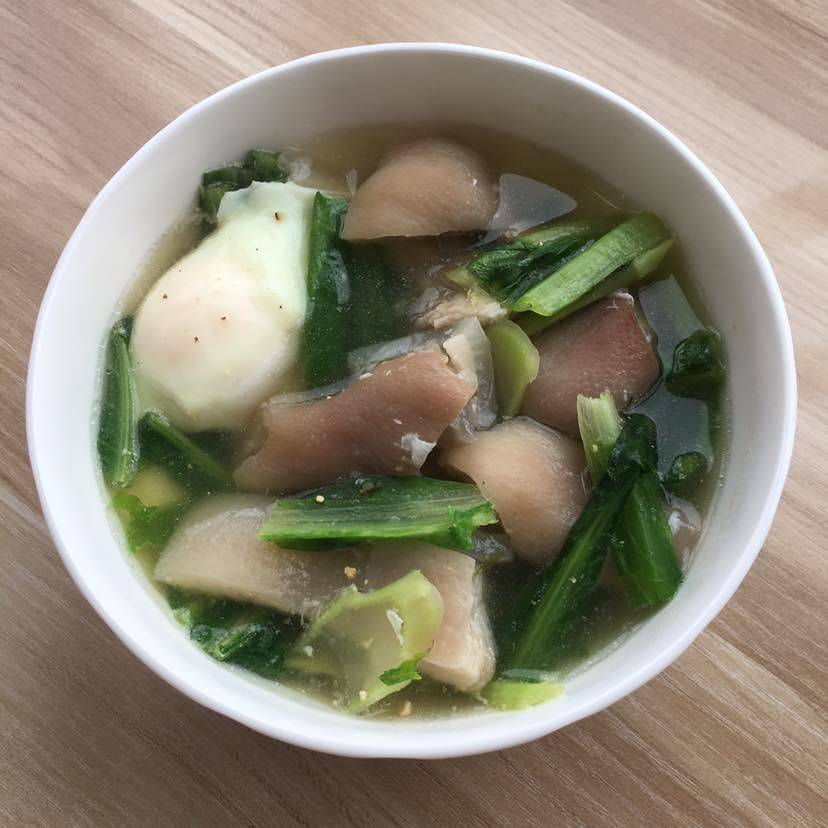 肘子皮荷包蛋莴笋叶汤
