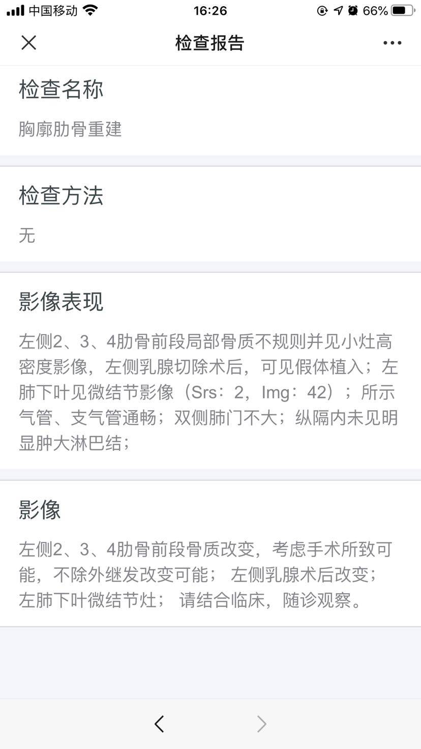 看了骨肿瘤专家和胸外专家都说不像恶性,肋骨有点变形,这个位置正好是扩张器下面,会不会是扩张器的事?扩张器每次注水都会感觉不太舒服,两三天才能恢复正常。