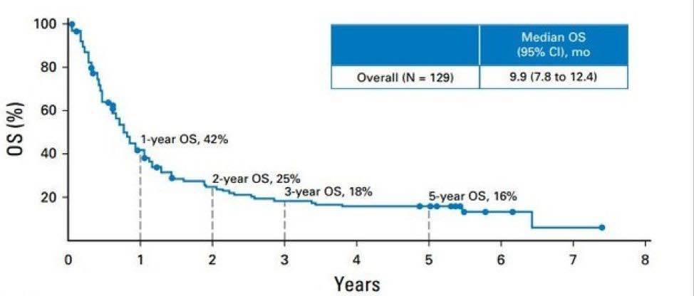 *免疫治疗拖尾效应,相对于化疗或者靶向药,在停药以后会有一部分人长期保持缓解的状态生存质量非常高。生存统计上来看,曲线到一个时间点以后很平缓。