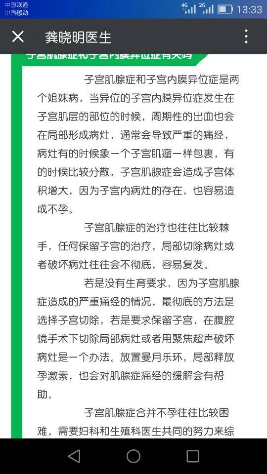 经期腹部剧痛,今天去医院检查,医生说是子宫腺体瘤和腺肌症,医生给的治疗方法 子宫切除,今年38岁可以考虑生二胎,或上曼月乐环,查询了一下曼月乐是一种雌激素环,而且绝经前不能取出,好像雌激素容易诱发狼,群里的姐妹们有长期使用雌激素的吗?