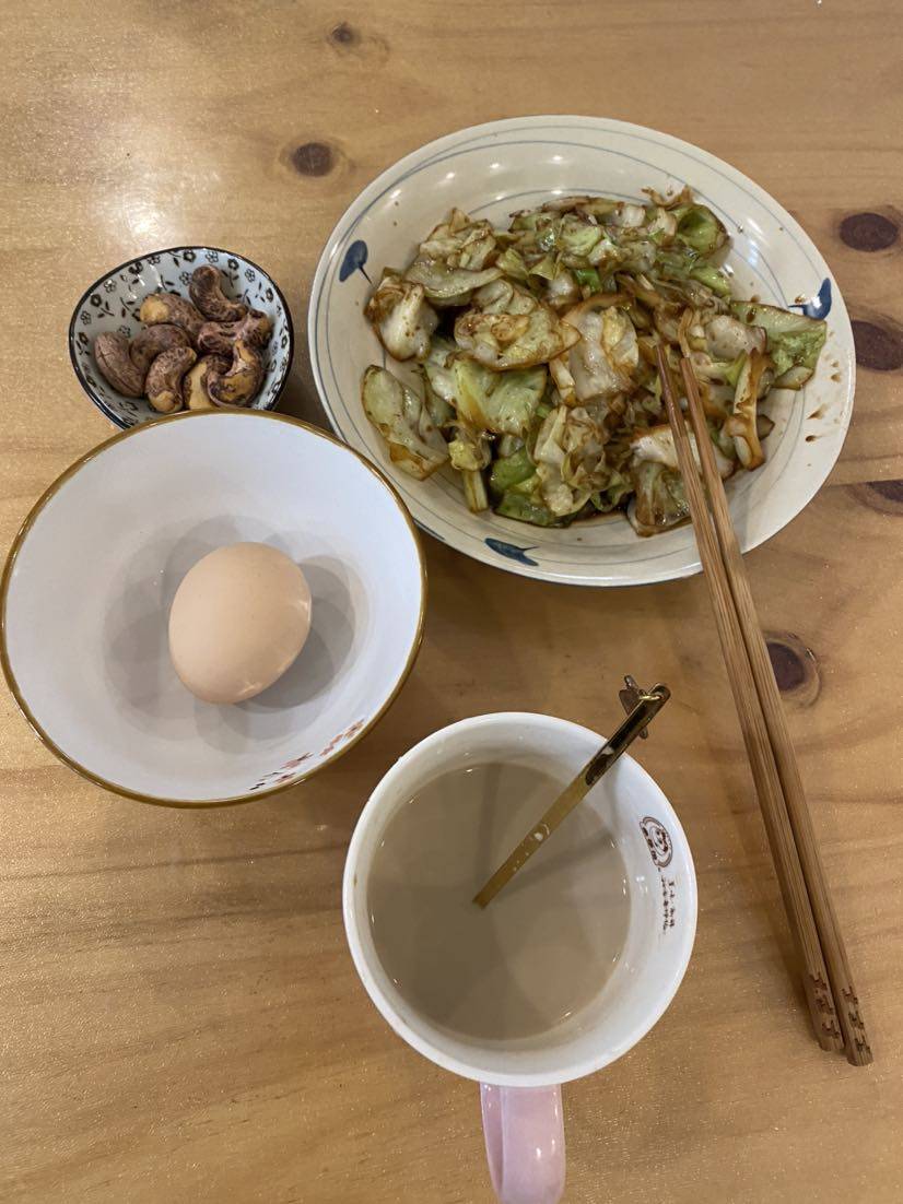 早:蔬菜🥬➕奶咖➕坚果🌰➕鸡蛋