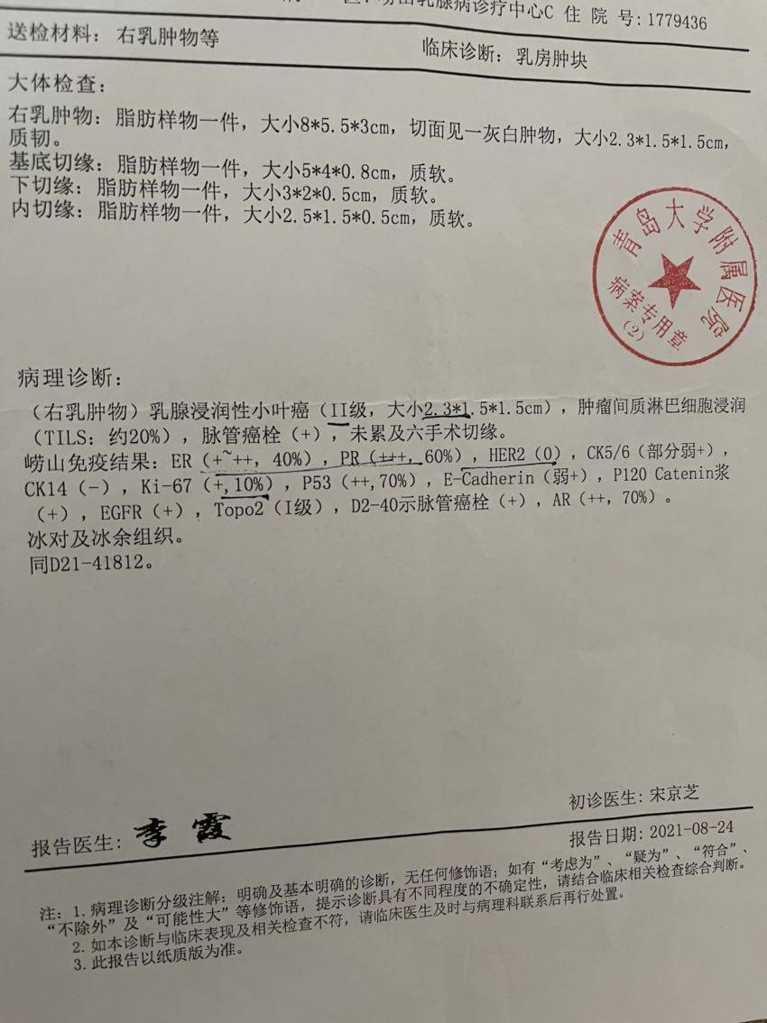 激素受体阳性,分型占乳腺Ca中65%,属于预后比较好的分型。不用纠结那2个淋巴结。