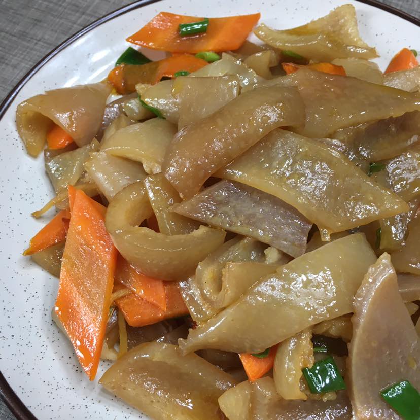 猪肉皮也是我的最爱,除了熬猪皮冻,我也喜欢炒着吃。