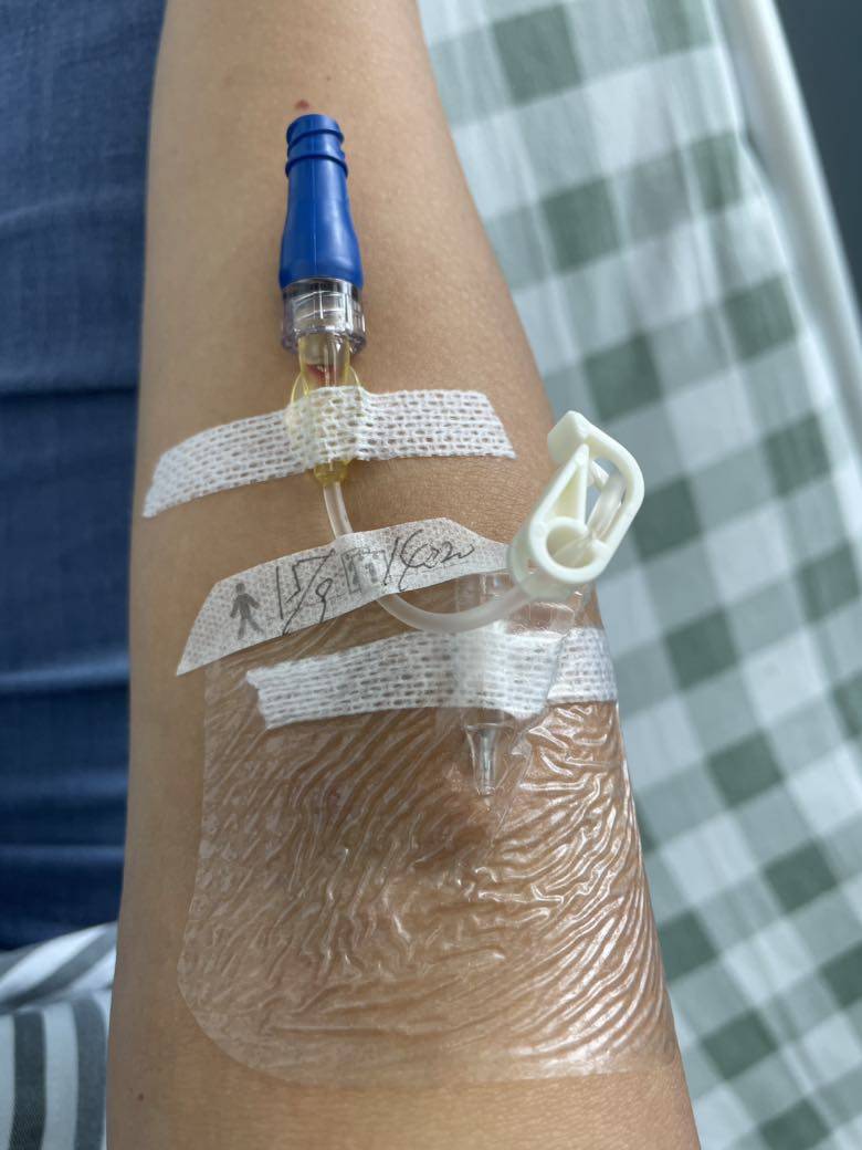 2021年8月初发现肝转移,到今天入组用药,差不多一个月半月了。中途抽了不少血,做了不少检查,什么增强ct,增强mr,骨扫描,基因检测。。。今天才正式住院用药。因为有PIK3CA基因突变,入组后的用药是:氟维司群+爱博新+新药GDC0077/安慰剂。实验组规定,用药前抽血,用完后半小时,一小时抽血,总之今天一共要抽7次血😂😂血管难找,让护士给了个留置针抽血用,明天还要抽!觉得这两个月次人家献血的抽的还要多🥺🥺在等待的这个月期间,转移瘤从2.3cm增大至3.2cm,进展也太快了吧。。。