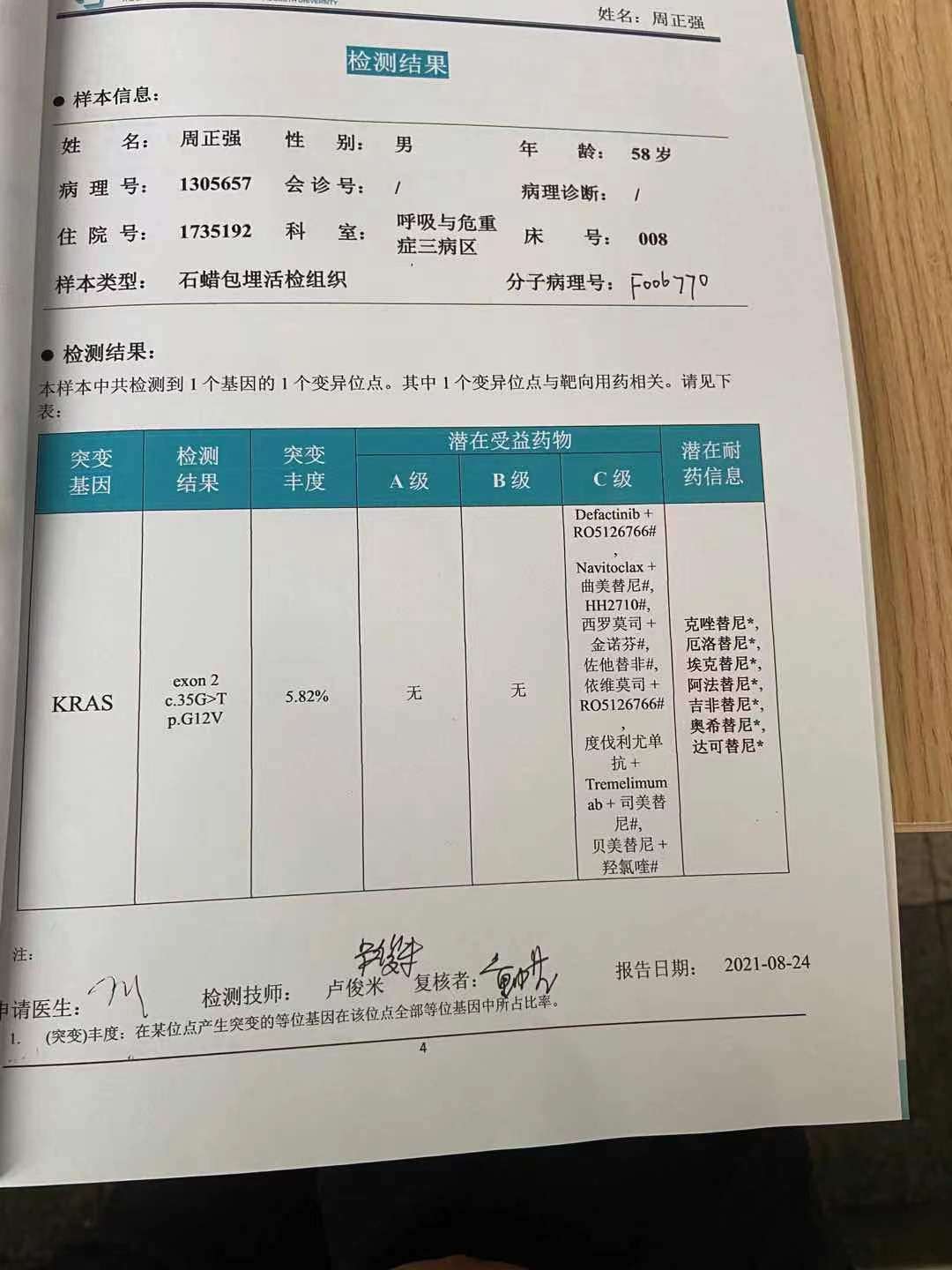 和你父亲一样kras(g12v), 目前双化 单免治疗中,第一次已完成,不知道后面会怎样