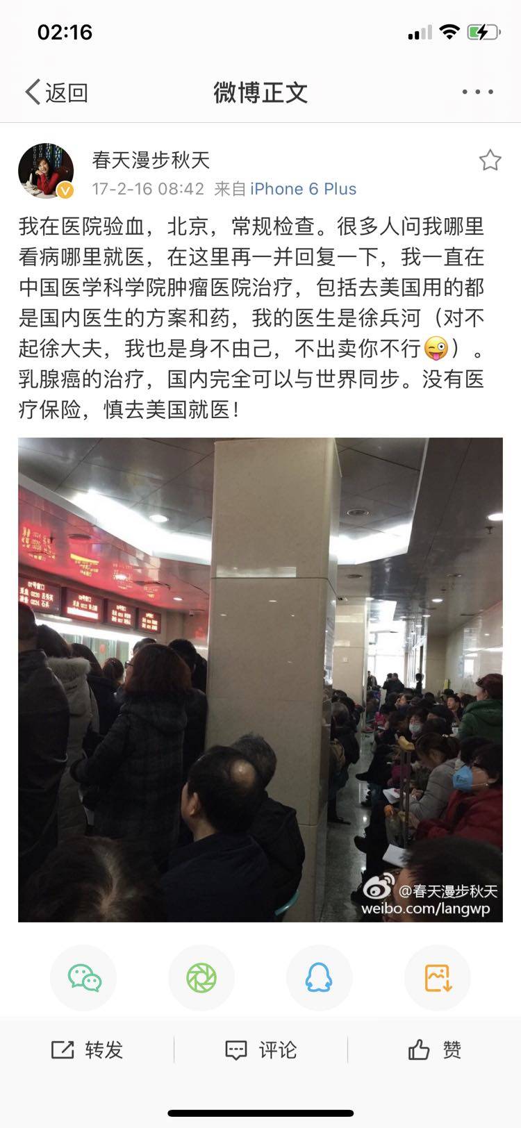 她是徐兵河主任治疗的患者,一直在美国疗养。说美国的空气好。
