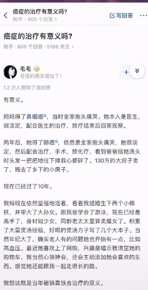 病了之后,我经常想,治疗的意义是什么 , 只不过是死前的苟延残喘,到最后终究变成一只干瘪的苹果。在大连这个城市,我一个国企小员工,每天累成🐶,每个月0.3万工资吃着一月7000的阿来,你倾尽了所有治病, 让活着的人怎么活. 直到有一天, 让我看到一篇文章, 让我能给自己一个解释, 我截到手机上, 经常看出来看看。