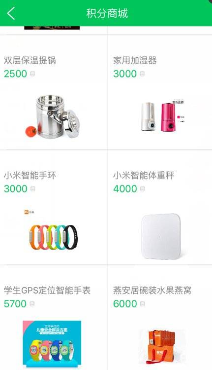 下面是积分商城的礼品展示: