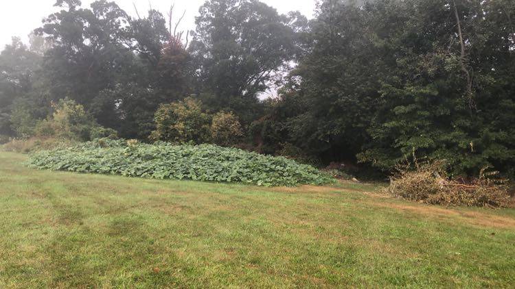 今年种的冬瓜丰收了。经验谈:平常吃冬瓜时南瓜时的种子留着,初春时等下雨之前埋在烂树叶堆里,不用打理就变成爪海。冬瓜长得快老外不吃没人摘。我住的社区每年秋天树叶堆一角落,后来我发现这些树叶是天然肥料,就直接把种子放进腐烂的树叶堆,最后发现冬瓜特别喜欢这种种法。收获的第3,4,5个冬瓜,明天带去教会两个,做为初熟的果子,送给牧师家庭。不知道这么做是否真的会让福气临到,让我再吃上冬瓜,想一想要感谢的人挺多,这三个瓜可能都得送人。大家怎么看呢?收获的第3,4,5个冬瓜。早起的鸟儿有虫吃。可能有人摘了几个走了,找不到了以前定位的几个。感谢上帝让我找着这几个。光采它们就花了一个小时。种菜,利用树叶堆种瓜是今年学会的秘诀。去年种的南瓜长了12个迷你南瓜。今年什么瓜的种子都在下大雨后埋到树叶堆,没有接触土壤,就长出这么多,真不容易。但是太浓密的瓜田也是小鹿🦌常来的地方,所以要全副武装,穿上高帮👢子,去剪的瓜。回来要洗澡洗头换衣服,不然的话会有deer ticks,会得Lyme disease,会很痛苦,还有后遗症,可辛苦了。当农民确实不易。叫了个朋友叫她自己来摘。当瓜农也挺不容易的,摘瓜对狼友来说挺吃力的。开始丰收南瓜了。再这样下去,我省下的菜钱就可以参加秋游了。