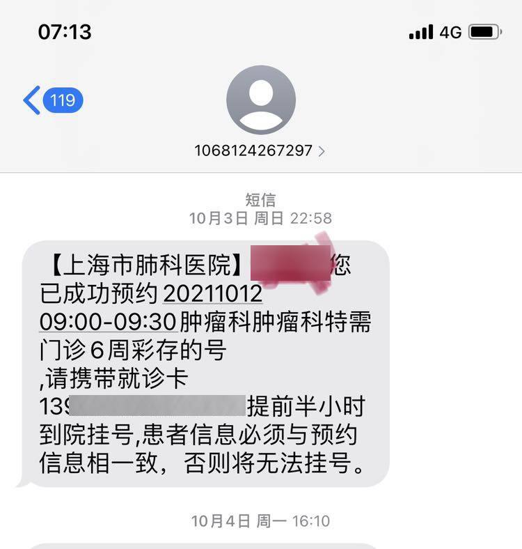 治疗一个月有余,但是心里不放心,还想去权威专家咨询一下治疗方案,故约了上海肺科医院周彩存主任的号(还是很幸运,抢到了十月份最后一个号)。