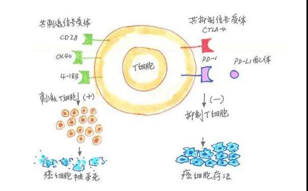 免疫检查点就好像是一个关卡,告诉免疫系统是“该继续杀”,还是“下班休息”。肿瘤细胞正是利用了免疫检查点的指挥功能,让机体的免疫系统一直处于“下班休息”的状态,从而肿瘤细胞能够在患者体内为所欲为。