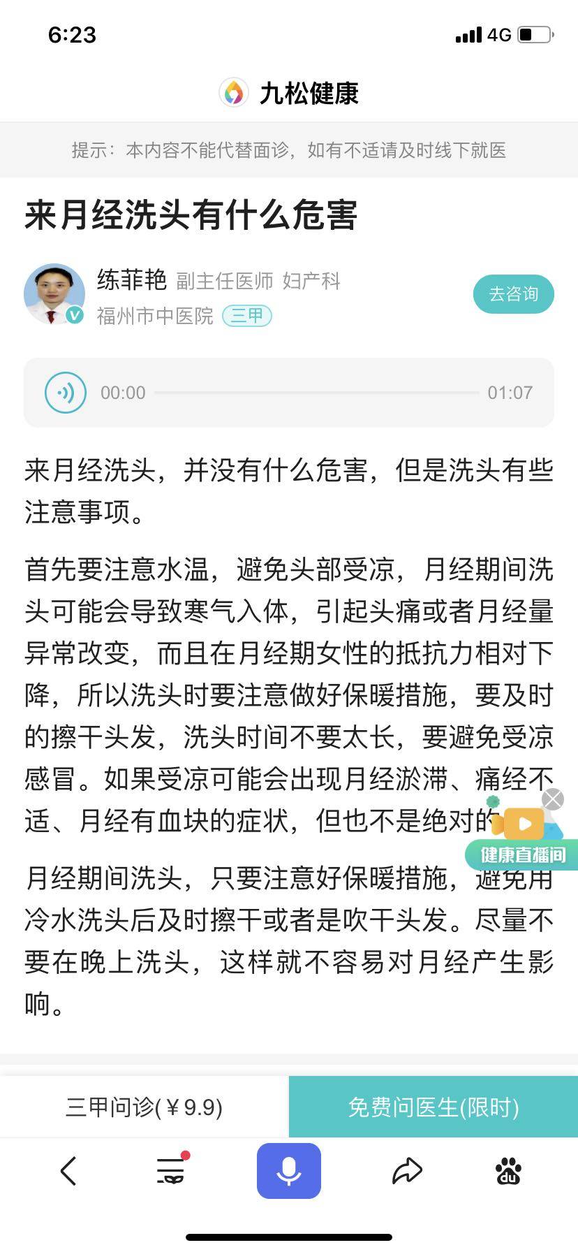 也不能这么说,我觉得是在虚弱的时候尽量少洗头,容易头晕。我现在天天洗头,来月经也一样洗。你现在太虚弱了