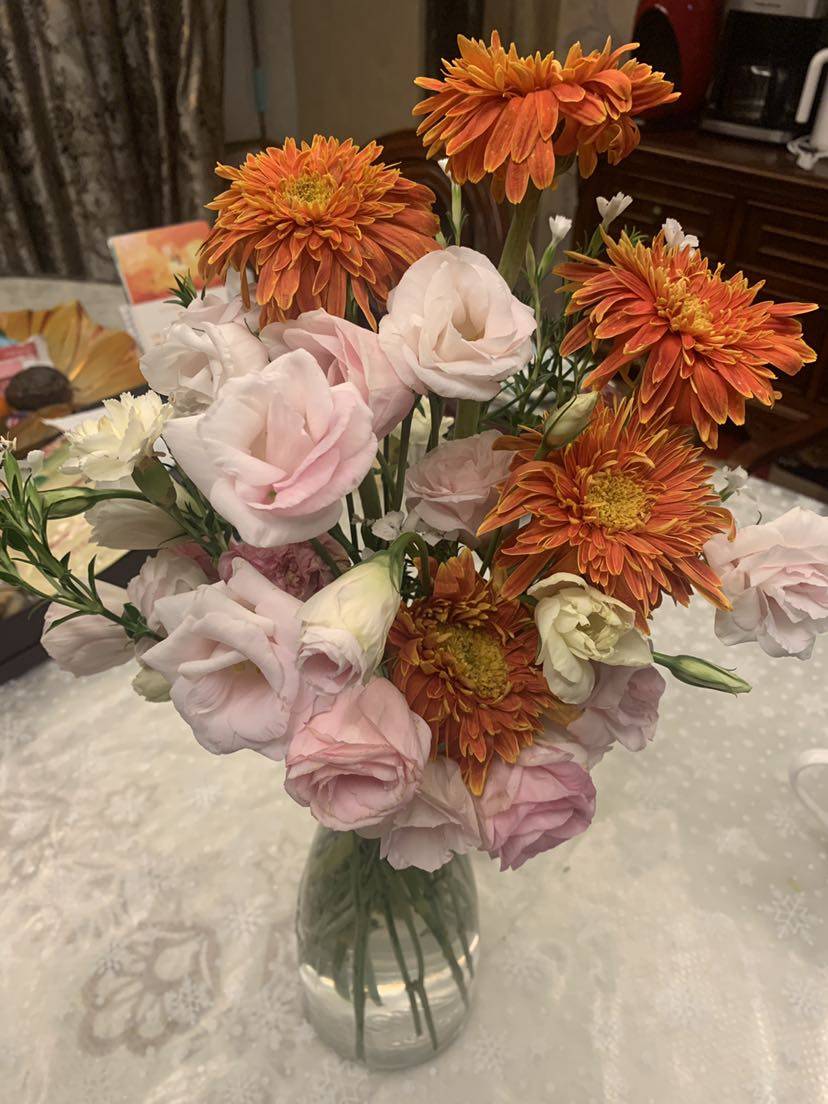 两周前买的花花,有一些还是很新鲜,整理成了一瓶。新买的花花还有一些没有花瓶插了,今天再想想找个地方插起来😘
