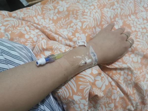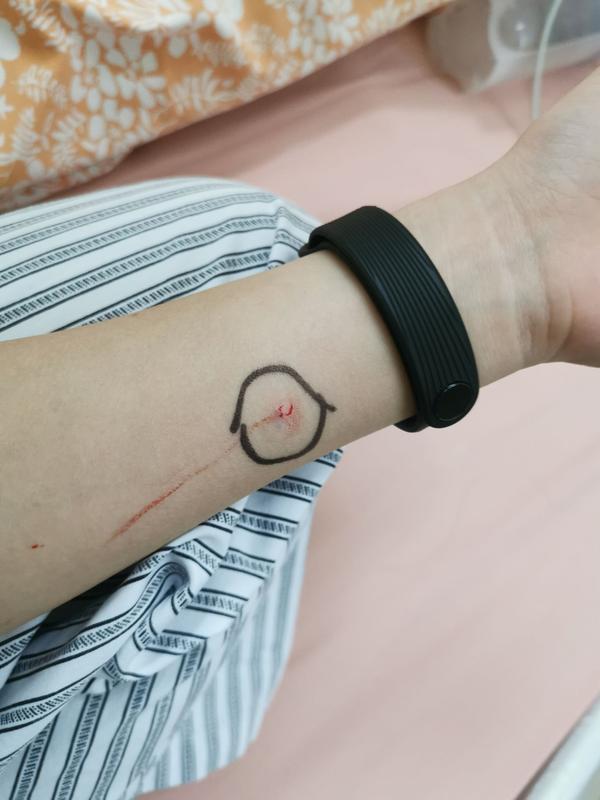 我的血管挺细的,所以姑娘真的很难找到,她扎了两次才成功,谢天谢地只扎了两次。